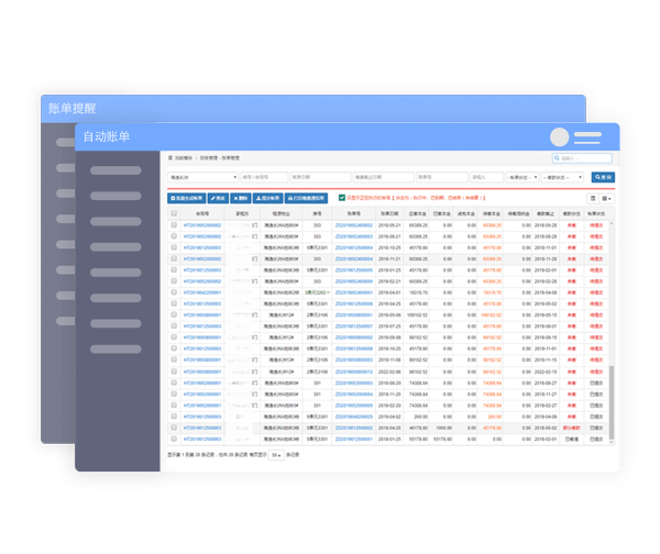 账单未生成、未审核提交、逾期欠款等情况自动提醒,可打印收款单。